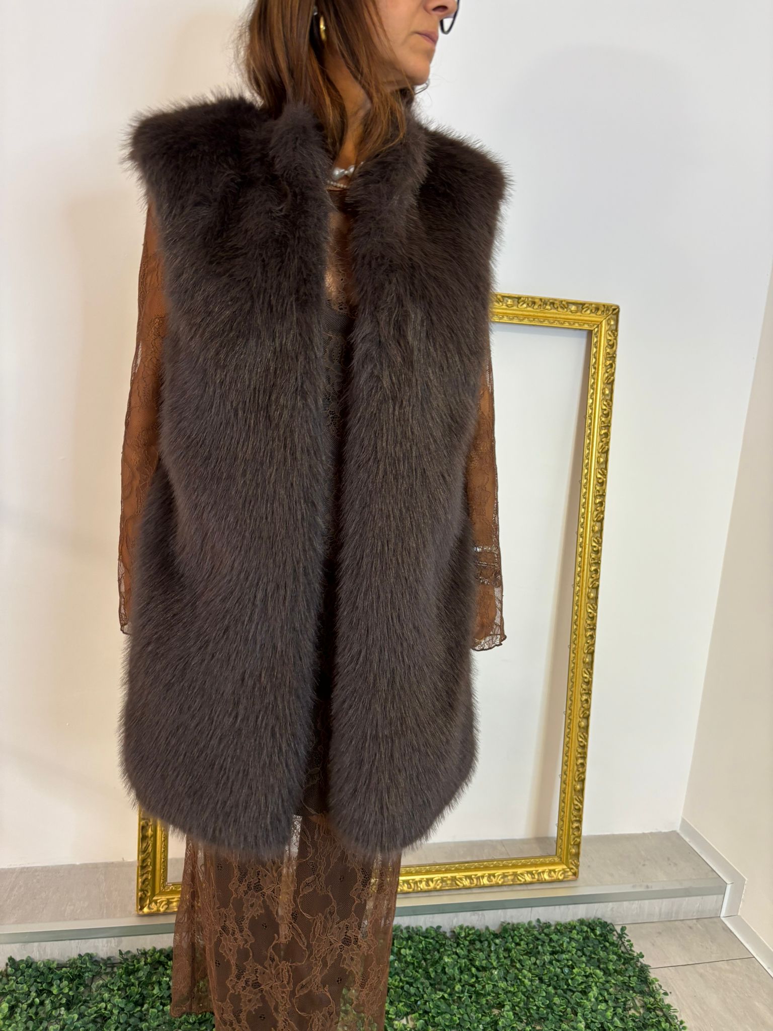 Eleganza senza tempo con cappotto in ecopelliccia marrone, versatile per ogni look invernale. Pelliccia sintetica di alta qualità che offre texture morbida e grande calore. Marrone caldo, ideale per abbinamenti neutri o tonalità earthy. Vestibilità ampia e dritta, per una silhouette comoda e ampleini che facilitano il layering.